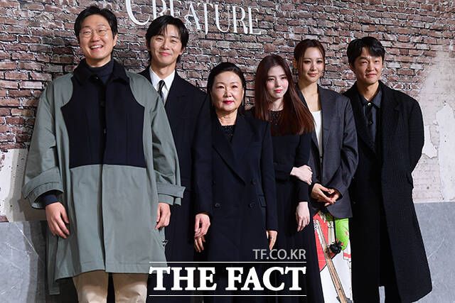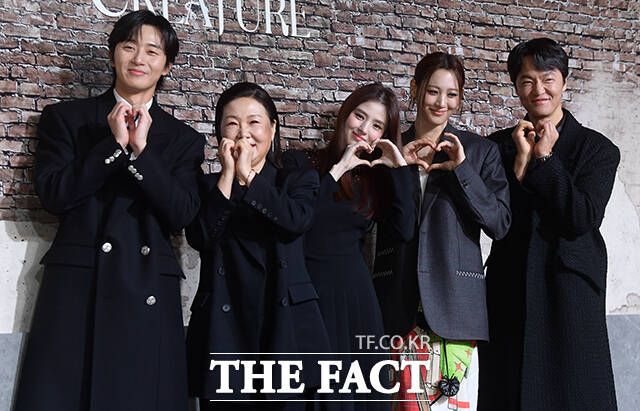 [더팩트ㅣ서예원 기자] 배우 박서준과 김해숙, 한소희, 수현, 조한철이 19일 오전 서울 용산구 레이어20 스튜디오에서 열린 넷플릭스 시리즈 '경성크리처' 제작발표회에 참석해 포즈를 취하고 있다.