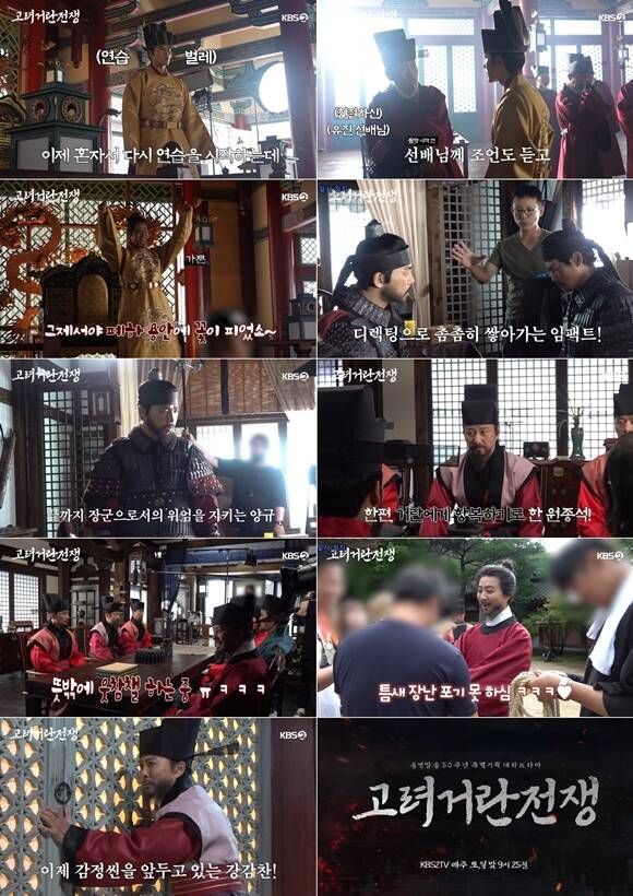 KBS는 18일 토일드라마 '고려거란전쟁' 촬영 비하인드 영상을 공개했다. 영상에는 캐릭터와 혼연일체가 된 배우들의 모습이 담겼다.