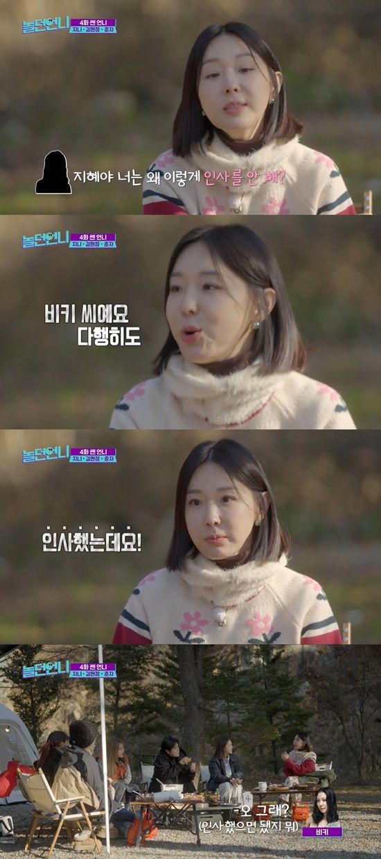그는 "논현동의 한 곳이었다. 비키, 지니 언니랑 저랑 지영이가 엘리베이터에 탔다"면서 "그 때 비키 씨가 '지혜야, 너는 왜 이렇게 인사를 안 해?' 하시더라. 저도 쫄았지만, 쫀 걸 보이기 싫어서 '인사했는데요?'라고 했다"고 전해 웃음을 줬다.