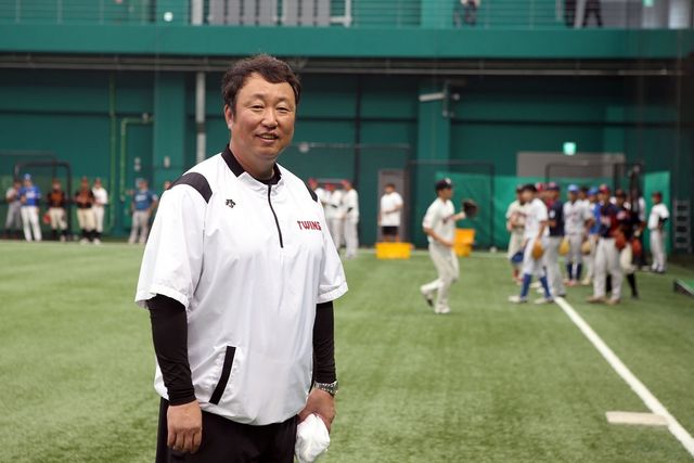차명석 LG 트윈스 단장이 2019년 9월 9일 경기도 이천시 LG 이천챔피언스파크에서 진행된 '2019 LG트윈스 신고선수 입단 테스트'에서 테스트 현장을 바라보고 있다. / LG 트윈스 제공