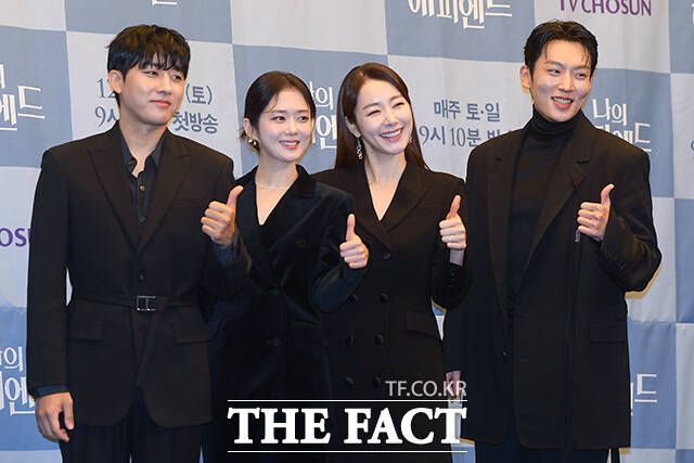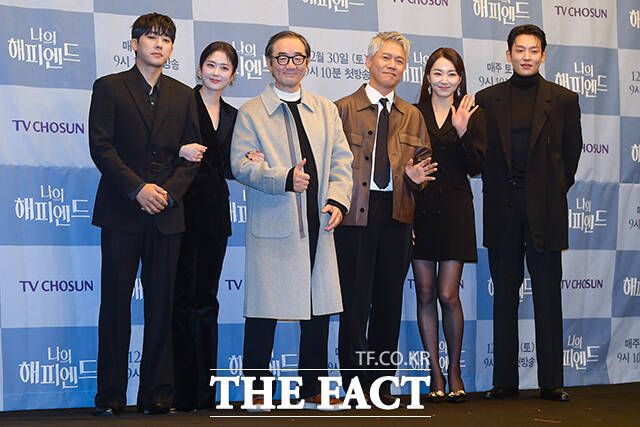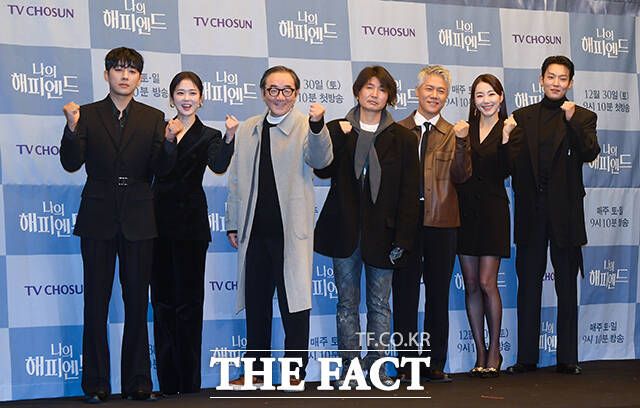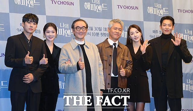[더팩트ㅣ서예원 기자] 배우 손호준과 장나라, 김홍파, 조수원 감독, 박호산, 소이현, 이기택이 21일 오전 서울 마포구 스탠포드호텔 서울에서 열린 TV조선 새 주말 미니시리즈 '나의 해피엔드' 제작발표회에 참석해 포즈를 취하고 있다.