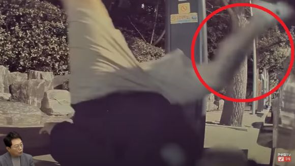 뒤로 물구나무서듯 넘어진 이 남성은 다시 일어나 통화를 이어가며 홀연히 자리를 떠났다.