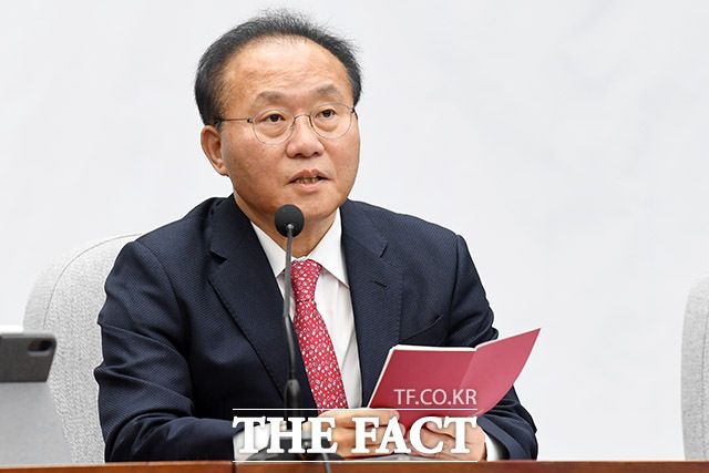 윤재옥 국민의힘 당 대표 권한대행 겸 원내대표가 22일 한동훈 비상대책위원장 후보자를 "수십 년 군림해 온 운동권 정치를 물리치고 탈 진영정치, 탈 팬덤 정치 시대를 열 잠재력을 가진 분"이라고 평가했다. /남용희기자