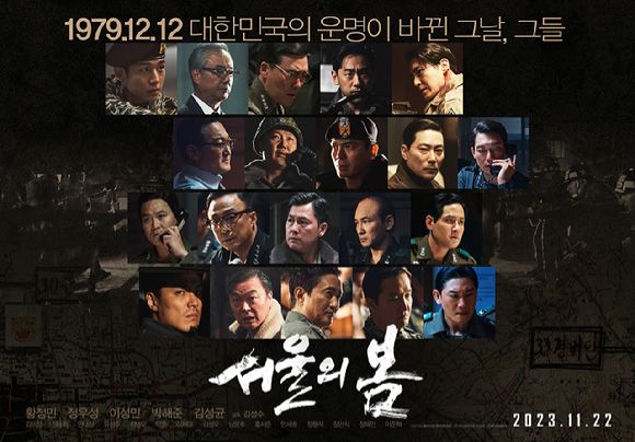 '서울의 봄'(감독 김성수)은 1979년 12월 12일 수도 서울에서 일어난 신군부 세력의 반란을 막기 위한 일촉즉발의 9시간을 그린 영화로, 한국 영하 사상 처음으로 12.12 군사반란을 다뤄 제작 단계부터 큰 기대를 모았다. 황정민과 정우성, 이성민, 박해준, 김성균, 정동환, 김의성, 안내상 등 연기 잘하는 배우들이 총출동했으며, 여기에 정만식, 이준혁, 정해인이 특별출연으로 힘을 보탰다.