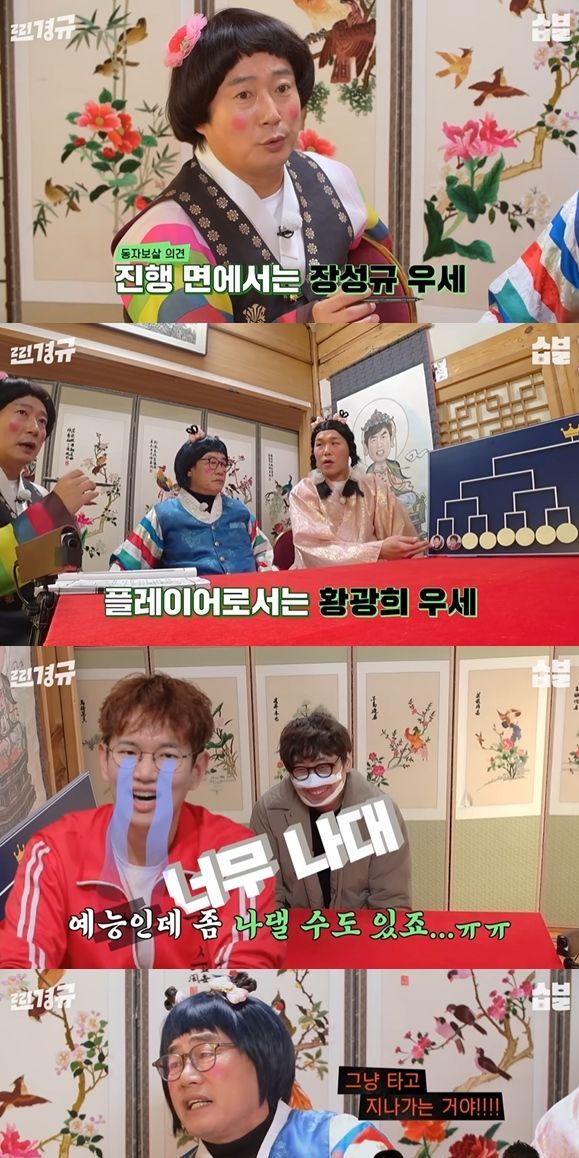 이경규는 광희를 선택했다. 그는 "(장성규가) 너무 나댄다"며 "나는 아나운서 출신의 예능인들을 싫어한다"고 소신을 드러냈다.