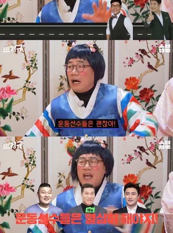 그 모습을 본 이수근은 운동선수 출신 예능인들에 대해 어떻게 생각하는지 질문, 이경규는 "운동선수들은 괜찮아. 호동이, 장훈이, 안정환이 얘네는 해야지"라고 편파 판정을 해 웃음을 유발했다.