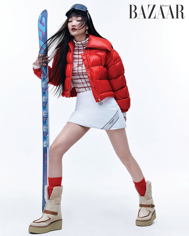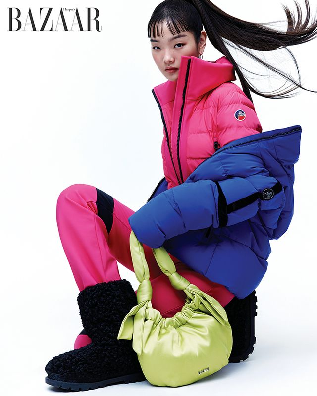 순백의 눈 위, 보기만 해도 눈이 시린 화이트로 대항하라. 발랄한 원색 포인트가 있다면 더할 나위 없다.