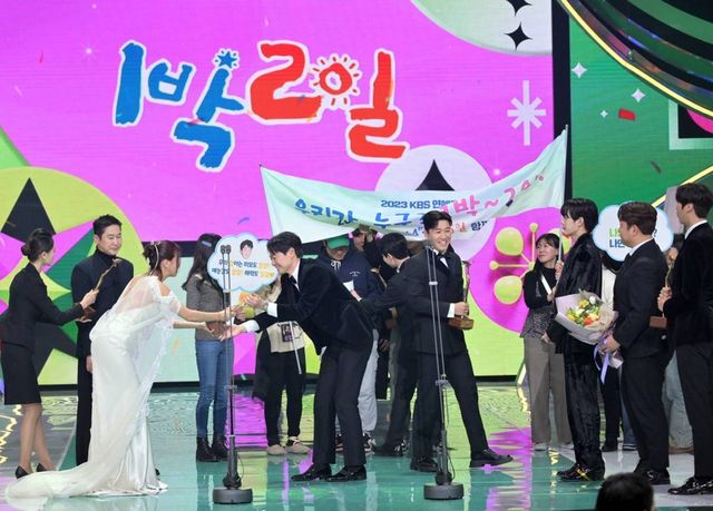'1박 2일' 팀은 23일 오후부터 24일 오전까지 서울 영등포구 여의도동 KBS 신관 공개홀에서 열린 '2023 KBS 연예대상'에서 김숙, 신동엽, 전현무, 류수영, 박진영, 이천수 등을 제치고 대상을 받았다.