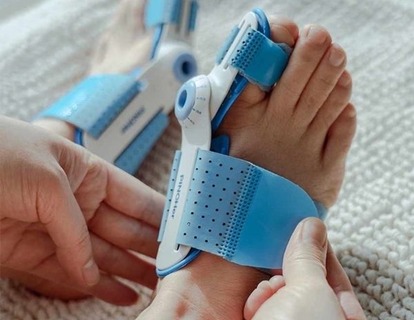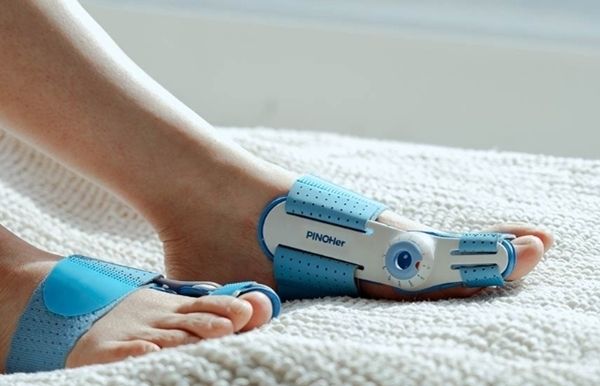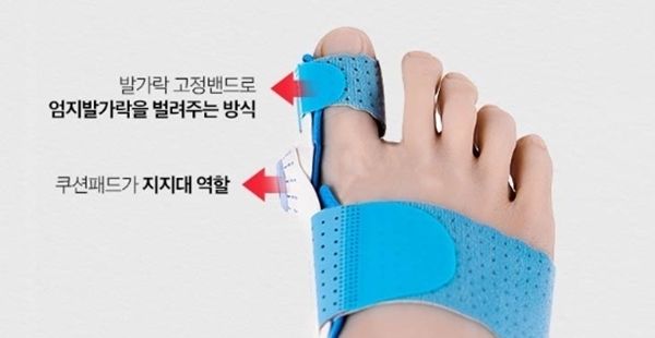 시중에 효과가 뛰어나다며 알려진 '핀처 무지외반증 교정기'는 휘어진 발가락 진행을 막는 셀프 교정기로 인기를 끌고 있다. 발가락 고정 밴드가 엄지발가락을 벌려 고정시키고, 쿠션 패드가 지지대 역할을 해줘 꾸준히 사용할 경우 휘어진 엄지발가락이 교정되는 느낌이 든다.