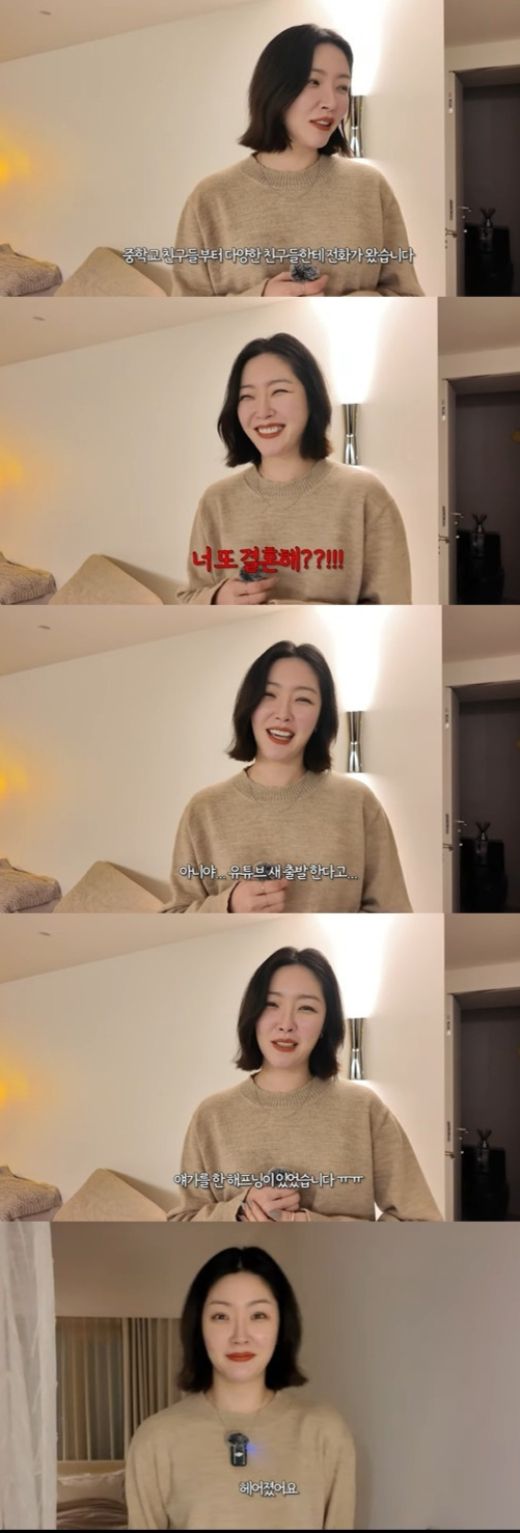 그는 "중학교 친구들부터 정말 다양한 친구들한테 전화가 왔다"며 "'너 또 결혼해?'라고 묻길래 '유튜브 새출발한다'라고 얘기한 해프닝이 있다"고 민망한 기색을 내비쳤다.