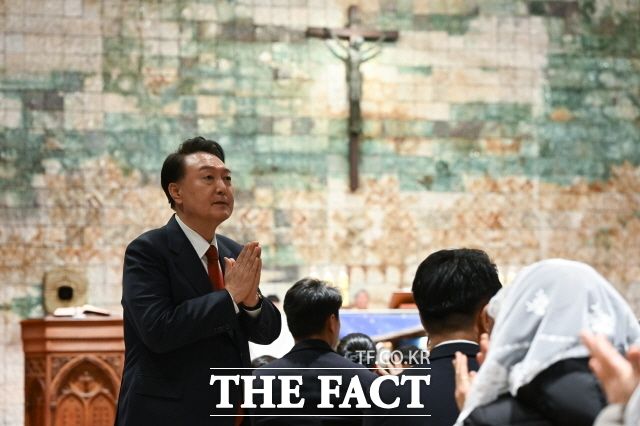[더팩트ㅣ박숙현 기자] 윤석열 대통령은 성탄절을 하루 앞둔 24일 서울의 한 성당에서 열린 성탄 미사에 참석했다. 또 대국민 메시지를 통해 "국민 여러분 모두 행복하고 복된 성탄의 기쁨을 누리시기를 소망한다"고 했다.