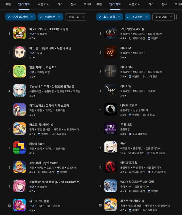 주간 순위는 모바일 게임 구글 플레이 기준 순위를 통해 1주간 어떤 게임들이 유저들의 주목을 받았는지 살펴보는 코너다.