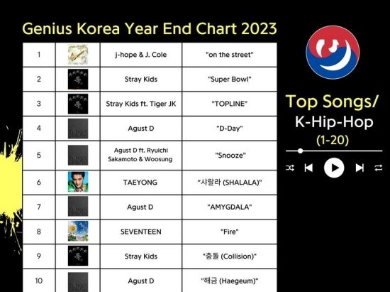 미국의 세계 최대 가사 및 음악정보 웹사이트 지니어스가 운영하는 '지니어스 코리아'가 최근 2023 연말 결산 차트를 발표했다.