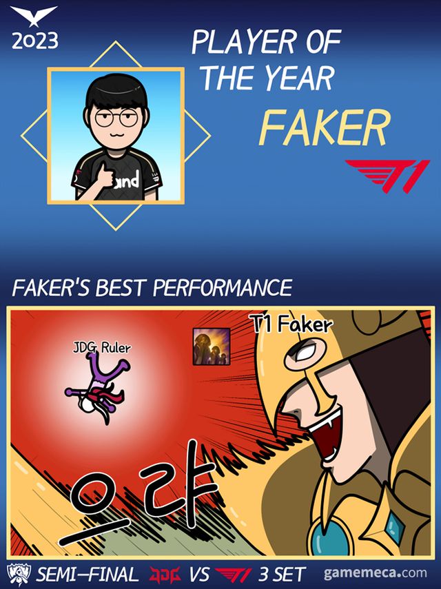어느덧 연말입니다. 올해 e스포츠를 돌아보면 기분 좋은 승전보가 연이어 전해진 한 해 였습니다. 그 중에도 T1의 롤드컵 우승은 극적인 전개와 선수들의 물오른 기량이 한데 어우러지며 e스포츠 팬들에게 잊지 못할 명장면을 남겼습니다. 올해 롤드컵은 T1과 징동 게이밍이 맞붙었던 4강이 사실상 결승전이라는 평가를 받았는데요, 특히 4강 3세트에 초 단위의 빈틈을 뚫고 '룰러' 박재혁의 바루스를 순식간에 끊어내며 불리했던 경기를 한 번에 뒤집어낸 '페이커' 이상혁의 슈퍼 플레이는 '올해의 e스포츠 명장면'으로 뽑기에 손색이 없습니다. 내년에도 롤드컵을 비롯한 국제 e스포츠 대회에서 한국의 선전을 기원해봅니다.