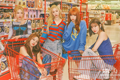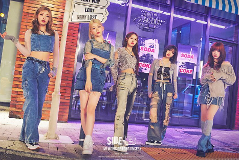 몽환적이고 빈티지한 공간에서 쉬폰 소재의 의상을 입은 멤버들의 모습이 눈길을 끕니다. 특히, 나비 모티프를 포인트로 한 스타일링이 돋보입니다.