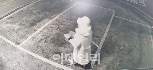 지구대 앞에 설치된 카메라엔 모자를 눌러 쓴 여성이 문 앞에 박스를 두고 간 모습이 찍혀 있었다.