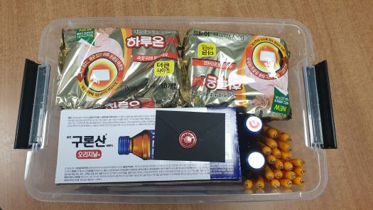 박스엔 건강 음료와 소세지 등 간식과 함께 핫팩, 직접 쓴 손편지가 동봉돼 있었다.
