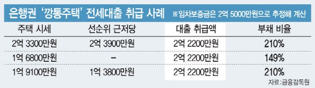 은행들은 주금공 심사 방식의 허점을 파고 들어 깡통주택에도 전세대출을 내준 결과 사기 세력의 표적이 됐다. 주금공은 은행에 대위변제해주는 보증금액이 2억원 이하인 주택에 대해선 주택가격과 선순위 심사를 하지 않는다. 주택도시보증공사(HUG)는 보증금액 크기와 상관없이 전세대출금과 선순위 금액이 주택 시세의 80% 이하여야 보증을 대주고, 서울보증보험(SGI)은 임차보증금과 선순위 금액이 시세 이하여야 보증을 선다.