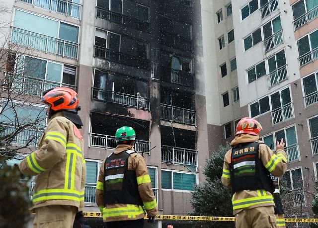 首尔道峰区的一处居民楼发生大火,造成2人死亡多人受伤。【图片提供 韩联社】