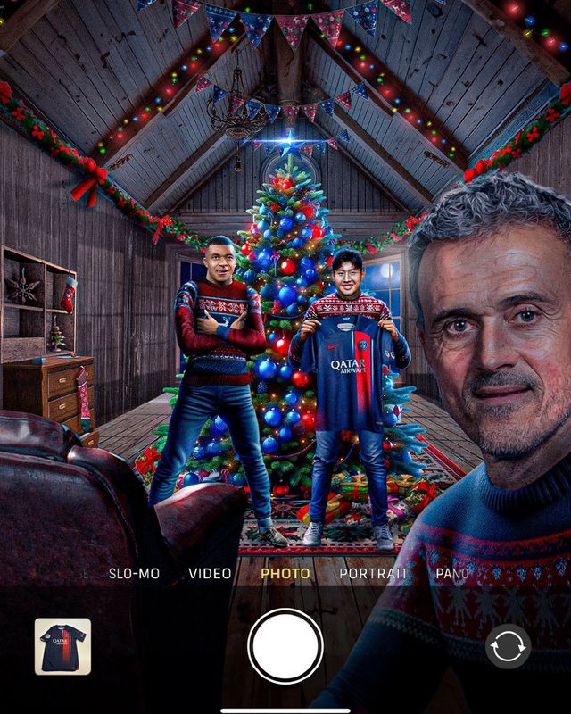 프랑스 리그1 사무국은 24일과 25일(한국시간)에 걸쳐 크리스마스 관련 포스팅을 꾸준히 게시했다. 사무국은 영어 계정을 통해 '크리스마스 셀피'라는 제목으로 루이스 엔리케 감독이 킬리앙 음바페, 그리고 이강인과 함께 사진을 찍는 그래픽을 업로드했다.