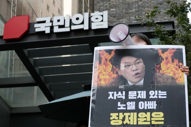 2021년 9월 노엘 음주운전 사건이 불거지면서 아버지인 장 의원의 사퇴를 촉구하는 학생 시위가 열린 모습 / 뉴스1