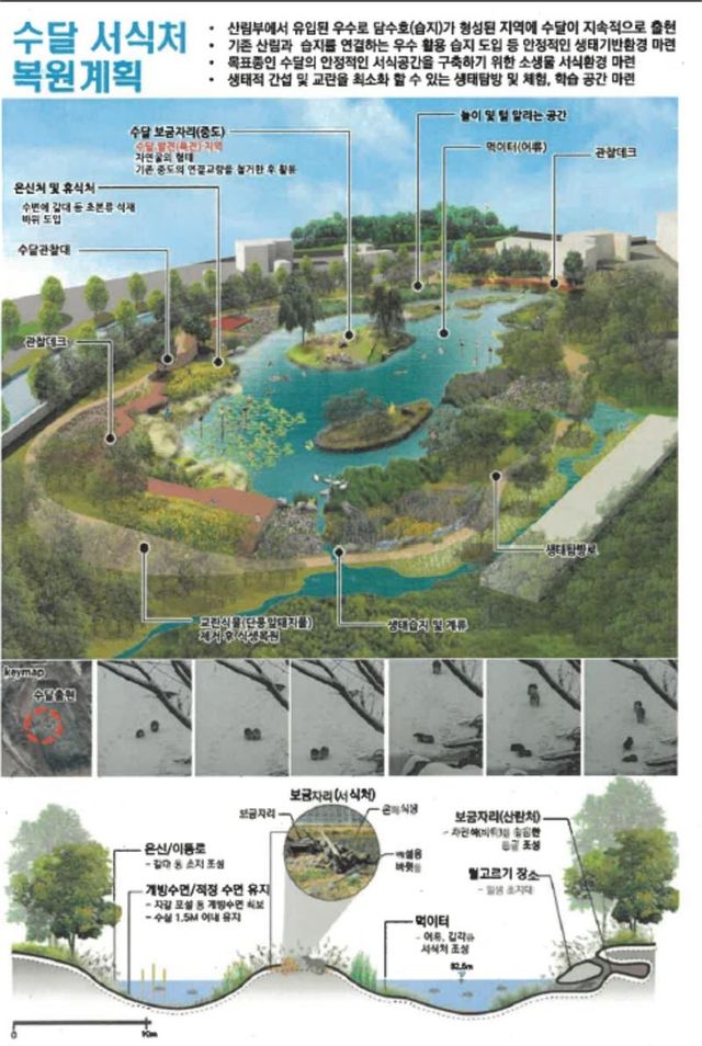 사업 대상지는 방치된 유휴부지로 산림부에서 유입된 우수로 담수호(습지)가 형성된 곳이다. 지난 2022년 1월, 습지 주변 및 중도를 중심으로 수달 4개체가 처음 발견된 이후, 지속적으로 출현하는 등 서식처 복원 및 관리가 필요했던 지역이다.