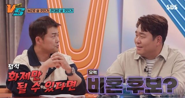 26일 방송된 SBS 예능프로그램 '강심장VS'는 '꼰대 vs MZ'특집으로 꾸며졌다. 이날 전현무를 비롯한 손범수 미나명 문세윤 츄 등 출연진은 결혼과 비혼에 대해 이야기를 나눴다.