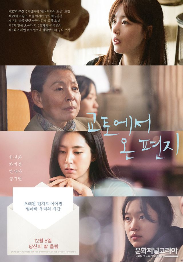 “러닝 타임 내내 가족을 떠올리게 만드는 힘이 있는 작품”이라는 호평을 받은 가족 드라마 <교토에서 온 편지>는 프랑스 브줄 영화제 2관왕에 이어 스페인 이매진인디아 국제영화제 각본상 수상 등 전 세계가 먼저 알아보고 극찬한 웰메이드 작품으로서 한국영화아카데미(KAFA) 장편 과정 15기 연구생인 김민주 감독의 자전적인 이야기를 모티브로 하여 어린 시절 외할머니와 생이별을 하고 한국으로 건너와 지금까지 영도에서 살고 있는 어머니의 삶뿐만 아니라 감독 본인이 자고 나란 고향 부산에 대한 애정과 향수, 비슷한 나이대의 청년들이 갖고 있을 현실적인 고민들을 함께 영화에 담아냈다.