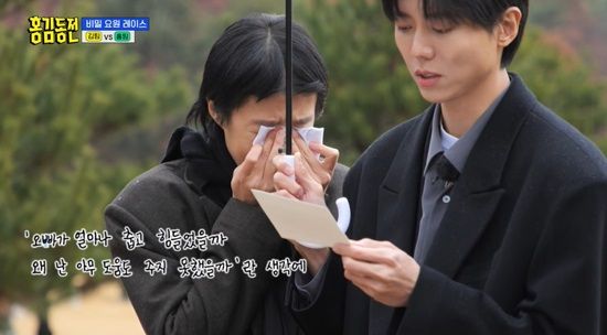 결국 주우재에 이어 편지를 받아 든 우영은 "아빠의 빈자리가 느껴지지 않게 두배의 사랑으로 우리 아이를 키울게요"라고 말하는 아내의 사랑에 먹먹하고 말았다. 편지를 읽은 뒤 미션에 대해 설명하던 PD도 "아이가 저희 애랑 동갑이어가지고"라며 목이 메어 말을 잇지 못했다.