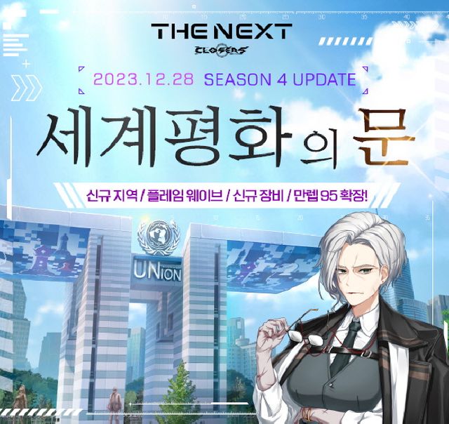 시즌 4의 본격적인 에피소드가 펼쳐지는 신규 지역 '세계평화의 문'을 선보였다. 시민들의 신뢰를 되찾기 위해 임무를 수행하는 클로저들과 교단의 전면전이 시작되며, 새롭게 추가되는 9개의 시나리오 던전을 통해 각 캐릭터별 스토리도 만나볼 수 있다.