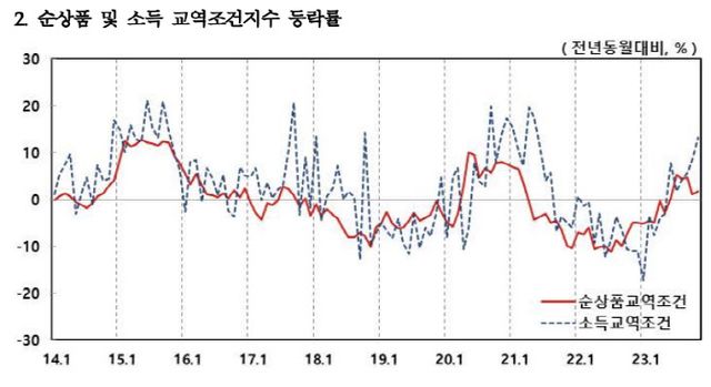 [이데일리 최정희 기자] 우리나라 교역조건이 반 년째 개선되고 있다. 수입과 수출가격이 모두 하락하고 있지만 수입가격 하락폭이 더 큰 영향이다. 우리나라 최대 수출품인 반도체의 경우 수출금액지수가 16개월 만에 상승세로 전환한 점도 눈에 띈다.