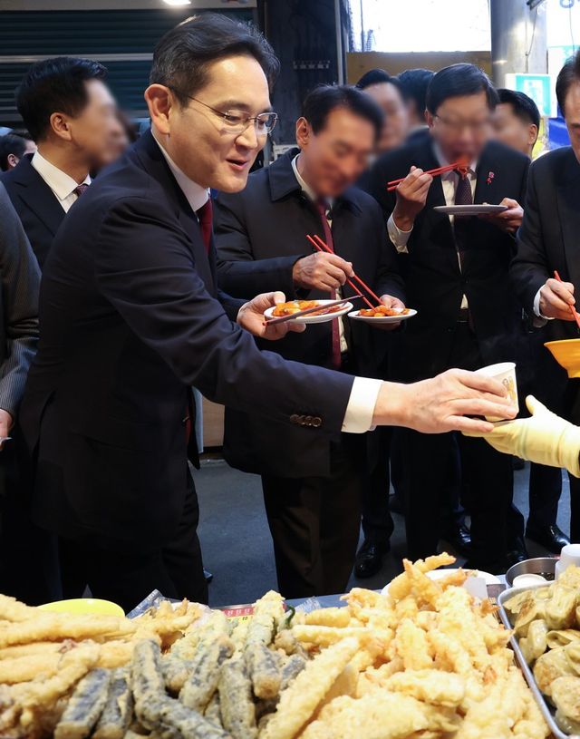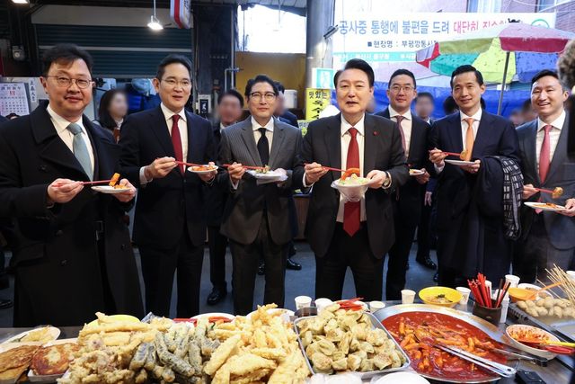 한편 윤석열 대통령을 비롯해 이 회장 등 기업인은 앞서 2030 세계박람회(엑스포) 유치가 불발된 부산을 찾아 지역민들을 만났다. 시민들과 가까이서 인사를 나누는가 하면 깡통시장을 돌며 떡볶이, 어묵 등 시장 음식을 맛봤다.