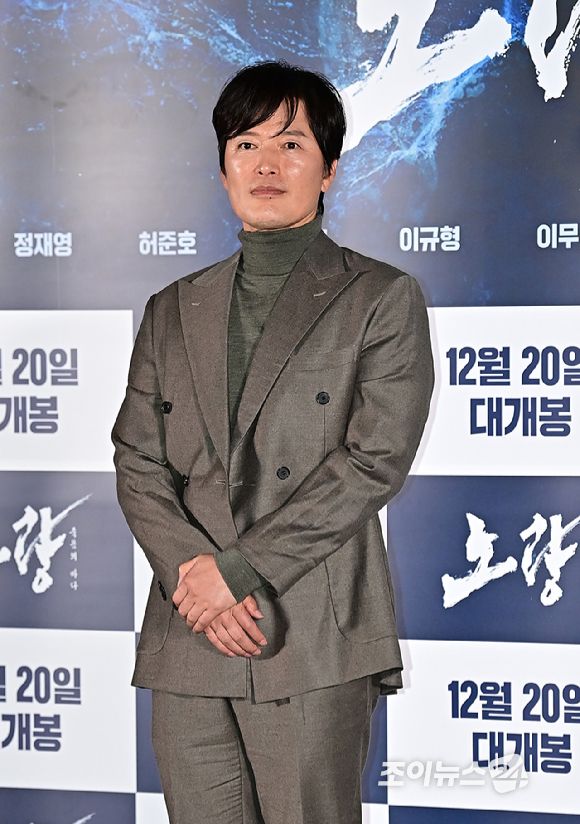 배우 정재영이 12일 오후 서울 송파구 롯데시네마 월드타워에서 열린 영화 '노량: 죽음의 바다'(감독 김한민) 언론시사회에서 포토타임을 갖고 있다. [사진=곽영래 기자]