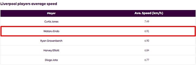 또 엔도가 영입됐을 때 팬들은 그가 프리미어리그의 빠른 속도를 따라가지 못할 것을 우려했으나 예상 외로 엔도는 리버풀 선수들 중에서도 발이 빠른 편으로 분류됐다.