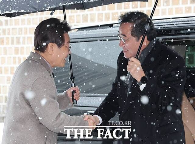 [더팩트ㅣ이성락 기자] 이재명 더불어민주당 대표와 이낙연 전 대표가 30일 오전 서울 중구의 한 식당에서 만나 비공개 회동에 돌입했다.