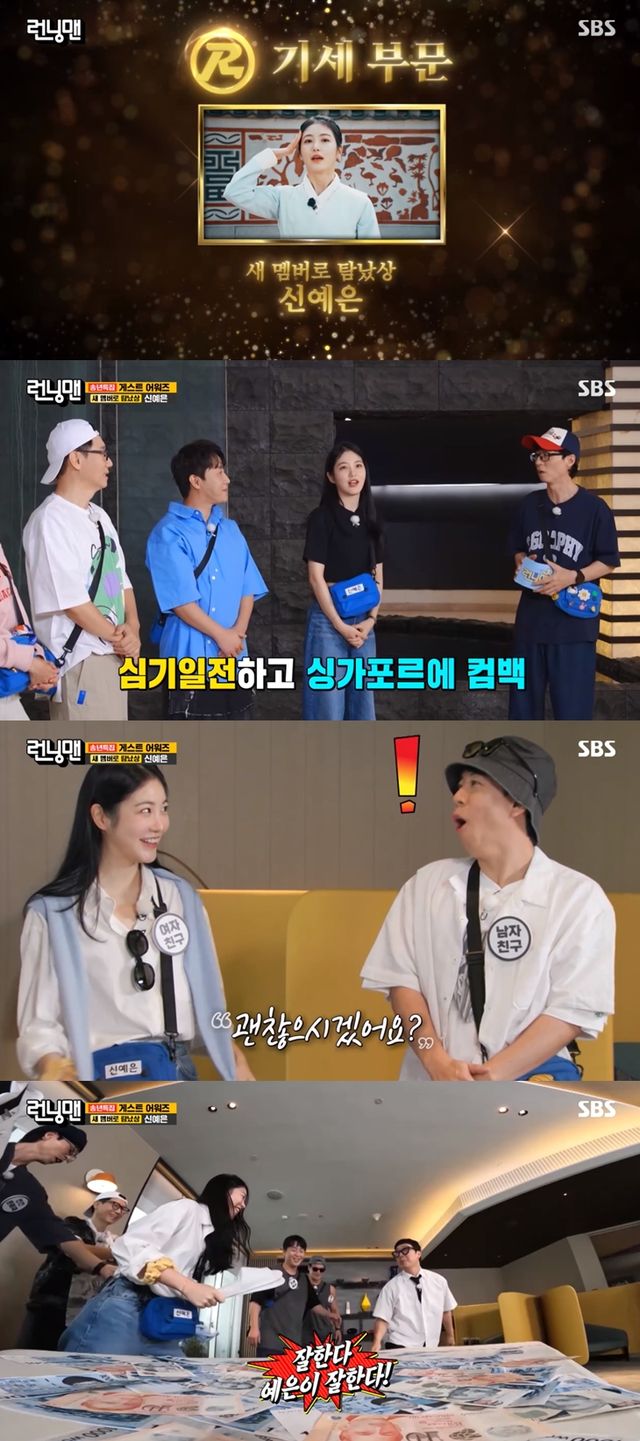 유재석 역시 "잘한다, 예은이 잘한다"라고 칭찬했다. 신예은은 천진난만한 매력으로 빠르게 '런닝맨'에 적응하며 예능감을 드러내 '런닝맨 게스트 어워즈'의 마지막을 장식했다.