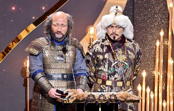 '고려거란전쟁'의 김준배와 김혁은 드라마 속 의상과 분장을 그대로 한 채 시상자로 나서 큰 웃음을 선사했다.
