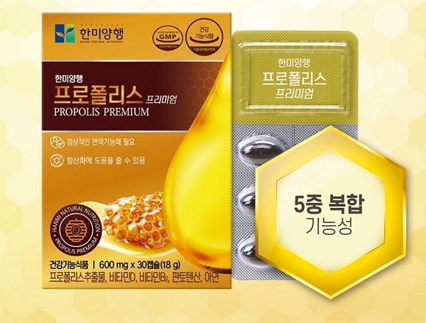 외부에서 침입하는 박테이라, 바이러스 등 각종 병균을 억제해 주는 항산화 물질인 '호주산 프로폴리스'가 17mg 함유됐다. 또 지방, 탄수화물, 단백질 대사와 에너지 생성에 필요한 '판토텐산', 면역기능과 체내 에너지 생성에 필요한 '아연, 비타민B와 비타민D' 등이 골고루 함유돼 하루 한 캡슐로 온 가족 건강을 간편하게 지킬 수 있다.