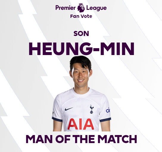 손흥민은 본머스전에서 올 시즌 8번째 맨 오브 더 매치(Men of the Match)를 수상하는 기쁨도 맛봤다. 프리미어리그 사무국이 경기 종료 후 공식 홈페이지를 통해 진행한 투표에서 팬들에게 압도적인 지지를 받았다.