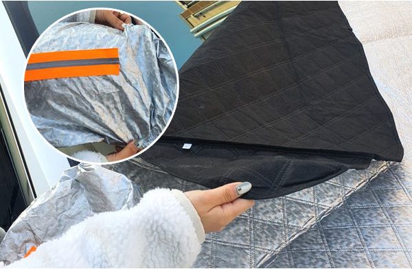 겉면은 고밀도 알루미늄 호일 코팅 방수 소재로 성에나 눈이 쌓여도 물이 스며들지 않는다.