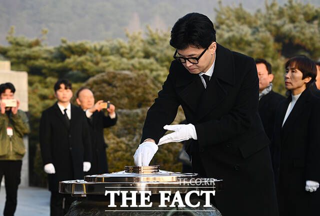 [더팩트ㅣ박헌우 기자] 한동훈 국민의힘 비상대책위원장이 2024년 갑진년(甲辰年) 새해 첫날인 1일 오전 서울 동작구 국립서울현충원을 찾아 참배하고 있다.