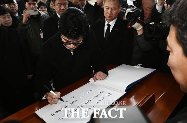 한 비대위원장은 방명록에 "동료 시민들과 함께 대한민국의 미래를 만들어 가겠다"라고 적었다.