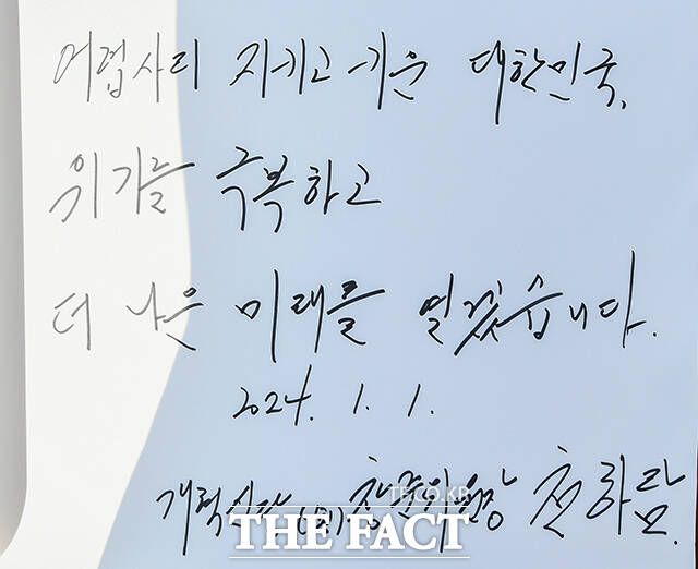 천 위원장은 "어렵사리 지키고 키운 대한민국, 위기를 극복하고 더 나은 미래를 열겠다"라고 적었다. 또 이 위원장은 "청룡의 해, 순국선열께서 이룩한 민주화의 기틀 위에 '새로운 미래'를 그리겠다"라고 적었다.