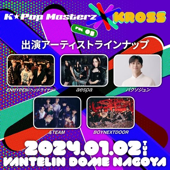 'K-Pop Masterz × KROSS vol.3'는 2일 일본 반테린 돔 나고야에서 개최되는 공연으로 배우 박서준, 그룹 에스파, 보이넥스트도어, 엔하이픈, 앤팀이 출연한다.