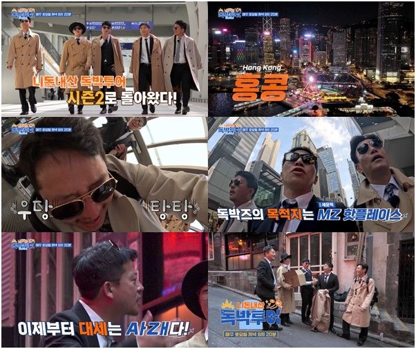 김대희, 김준호, 장동민, 유세윤, 홍인규는 홍콩으로 올해 첫 여행을 떠났다. 이번 예고편에서 ‘독박즈’는 홍콩 누아르 명작 ‘영웅본색’을 연상케 하는 트렌치 코트에 선글라스를 단체로 착용해 강렬한 카리스마를 발산하는 한편, 유세윤이 강추한 MZ 핫플레이스로 비장하게 이동해 관심을 모은다.