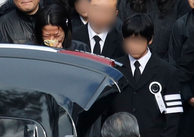 발인식이 끝난 뒤 중학생인 큰아들은 환히 웃는 고인의 영정사진을 들고 장례식장을 나섰다. 전혜진은 작은아들의 손을 잡은 채 오열하며 뒤를 따랐다.