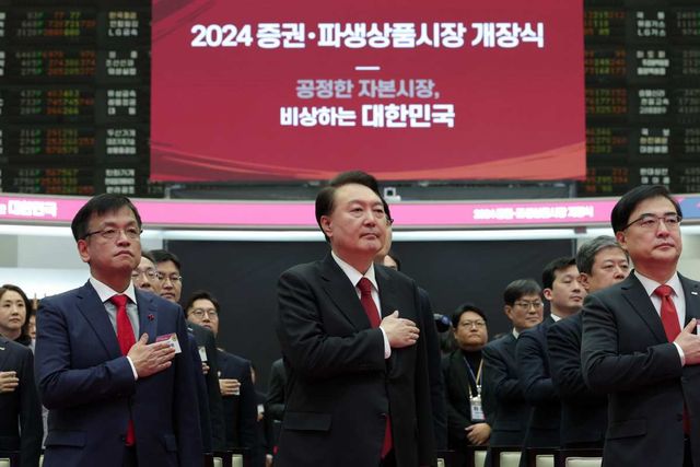 윤 대통령은 지난 2일 오전 한국거래소 서울 사옥에서 개최된 '2024년도 증권·파생상품시장 개장식'에 참석해 축사를 했다.