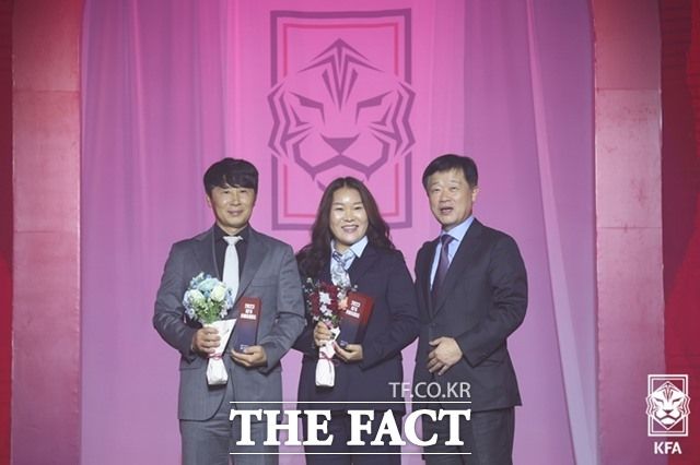 김기동 감독(왼쪽)과 김은숙 감독이 올해의 지도자상을 수상했다./KFA