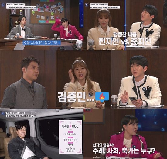 2500만원이 걸린 ‘진짜 신지’ 찾기에 혼란을 주기 위해 ‘가짜 신지’ 이은지X곽범X손동표X김수찬 4인과 ‘진짜 절친’ 신지가 채팅방 속에 등장했다. 채팅방에서 ‘김종민이 드디어 결혼한다고 한다.