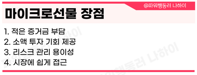 마이크로선물의 장점은 어떤것들이 있는지 알아보도록 할게요.